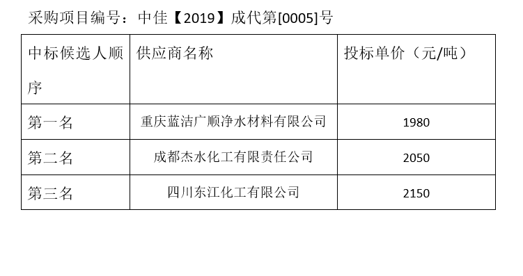 內江市污水處理有限責任公司碳源補充劑和輔助消毒劑招標項目(第1包)評標結果公示