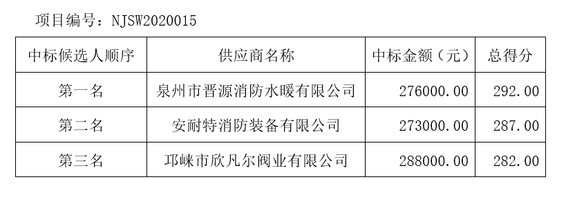 內(nèi)江市水務(wù)有限責任公司消火栓采購項目評標結(jié)果公示