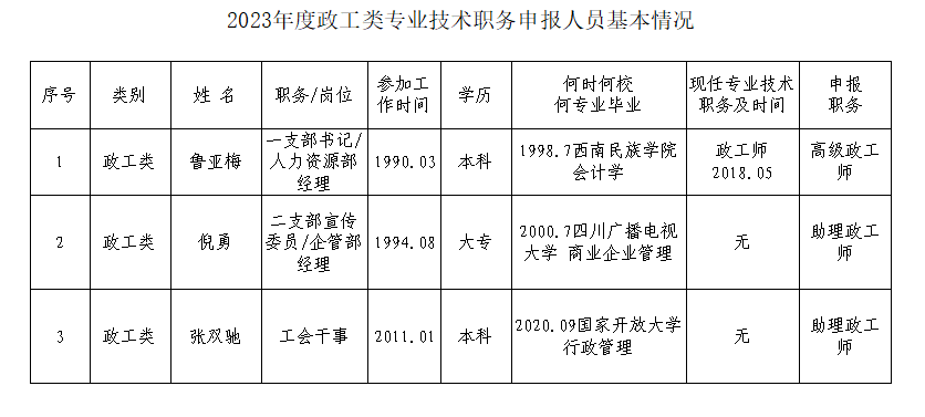 經(jīng)審核,魯亞梅同志符合申報(bào)高級(jí)政工師任職資格;吳柏霖、張茜、李昊謙3名同志符合申報(bào)工程師任職資格;李斌、楊程翔、劉靈漾、李永潔、黃俊雄、曾鑫、郭炯宏7名同志符合申報(bào)助理工程師任職資格;倪勇、張雙馳2名同志符合申報(bào)助理政工師任職資格。現(xiàn)對其申報(bào)基本情況予以公示。公示期限自9月18日至9月22日。如有異議,請?jiān)诠酒谙迌?nèi)通過書面或其他形式向公司人力資源部反映。