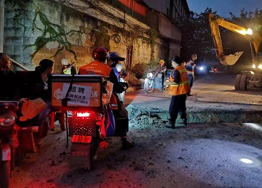 該工程須經(jīng)鐵站街(鍛壓廠門處)DN300主管接水,因該位置過往車輛多,行人密度大,安全隱患較大,且按照經(jīng)開區(qū)住建局方案批復要求,2天內必須完成過街的所有施工內容,因此時間緊、任務重、難度大。