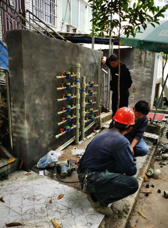 在做好安全防護(hù)準(zhǔn)備后,歷經(jīng)4天的清淤轉(zhuǎn)移,2天的鉆孔開窗、管溝開挖、新表墻砌筑,2天的集中攻關(guān)改管后,將原有表位廢除遷改,在4月30日完成整改工作,確保了“五一”期間經(jīng)營戶的正常營業(yè)用水。