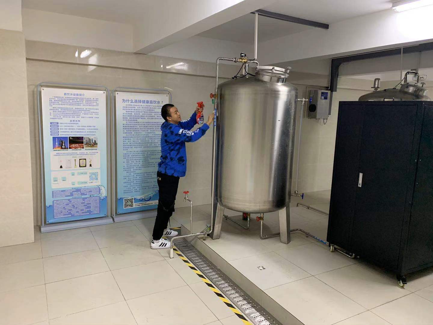 為切實(shí)做好內(nèi)江六中高新校區(qū)新學(xué)期的直飲水系統(tǒng)啟用工作,保障全校師生的飲水安全,豪鵬公司運(yùn)維人員對校內(nèi)直飲水系統(tǒng)集中開展了凈水設(shè)備電器檢查、凈水軟化鹽補(bǔ)充、管道消毒、凈水罐體內(nèi)外和泵房環(huán)境衛(wèi)生清潔消毒,以及終端凈水設(shè)備恢復(fù)調(diào)試等系列工作,并抽取水樣送專業(yè)水質(zhì)檢測機(jī)構(gòu)檢測,檢測結(jié)果均符合直飲水飲用標(biāo)準(zhǔn)。豪鵬公司以其規(guī)范嚴(yán)謹(jǐn)?shù)闹憋嬎芾?,得到了校方高度認(rèn)可。