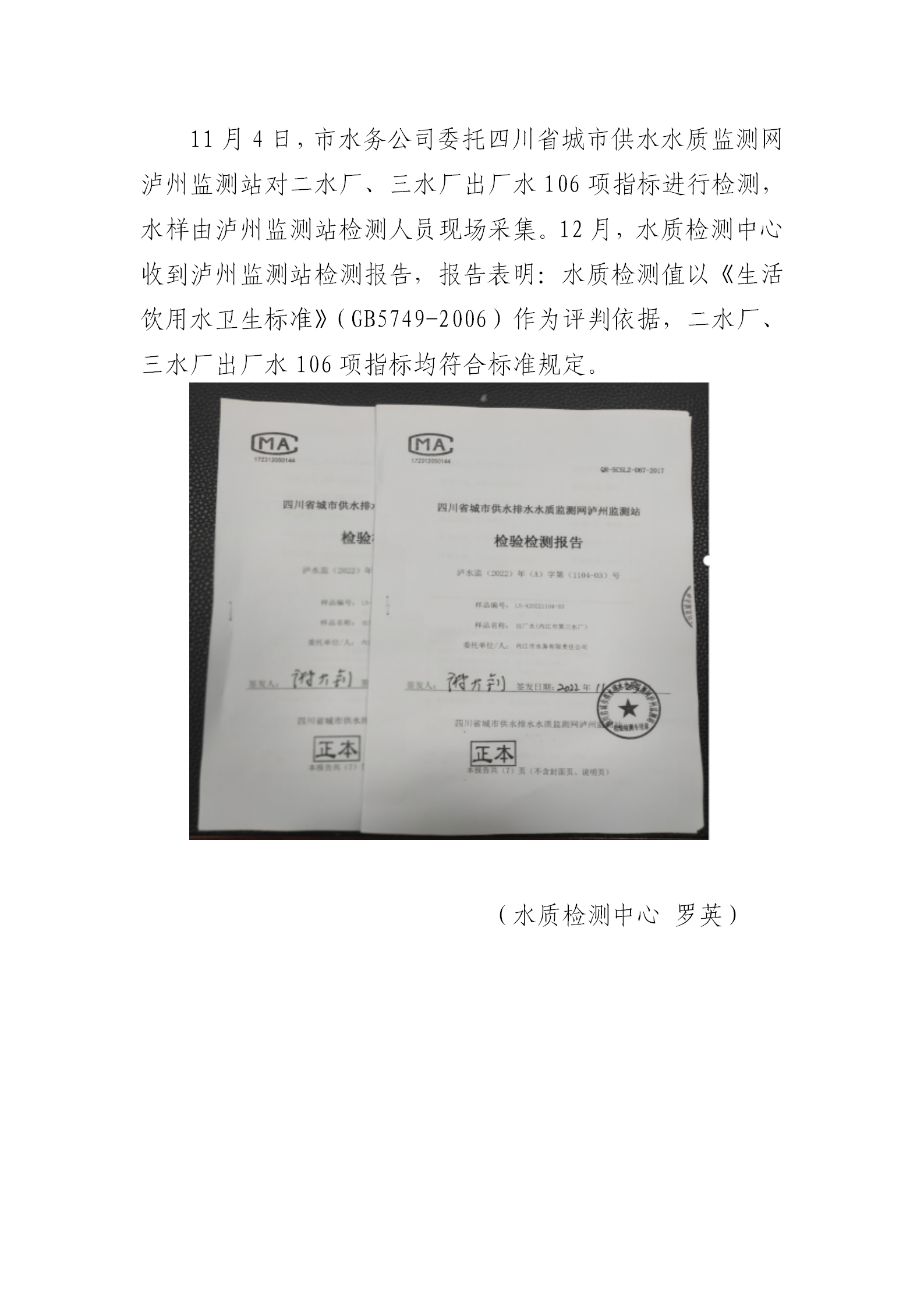 二水廠、三水廠出廠水106項(xiàng)指標(biāo) 符合國家標(biāo)準(zhǔn)要求