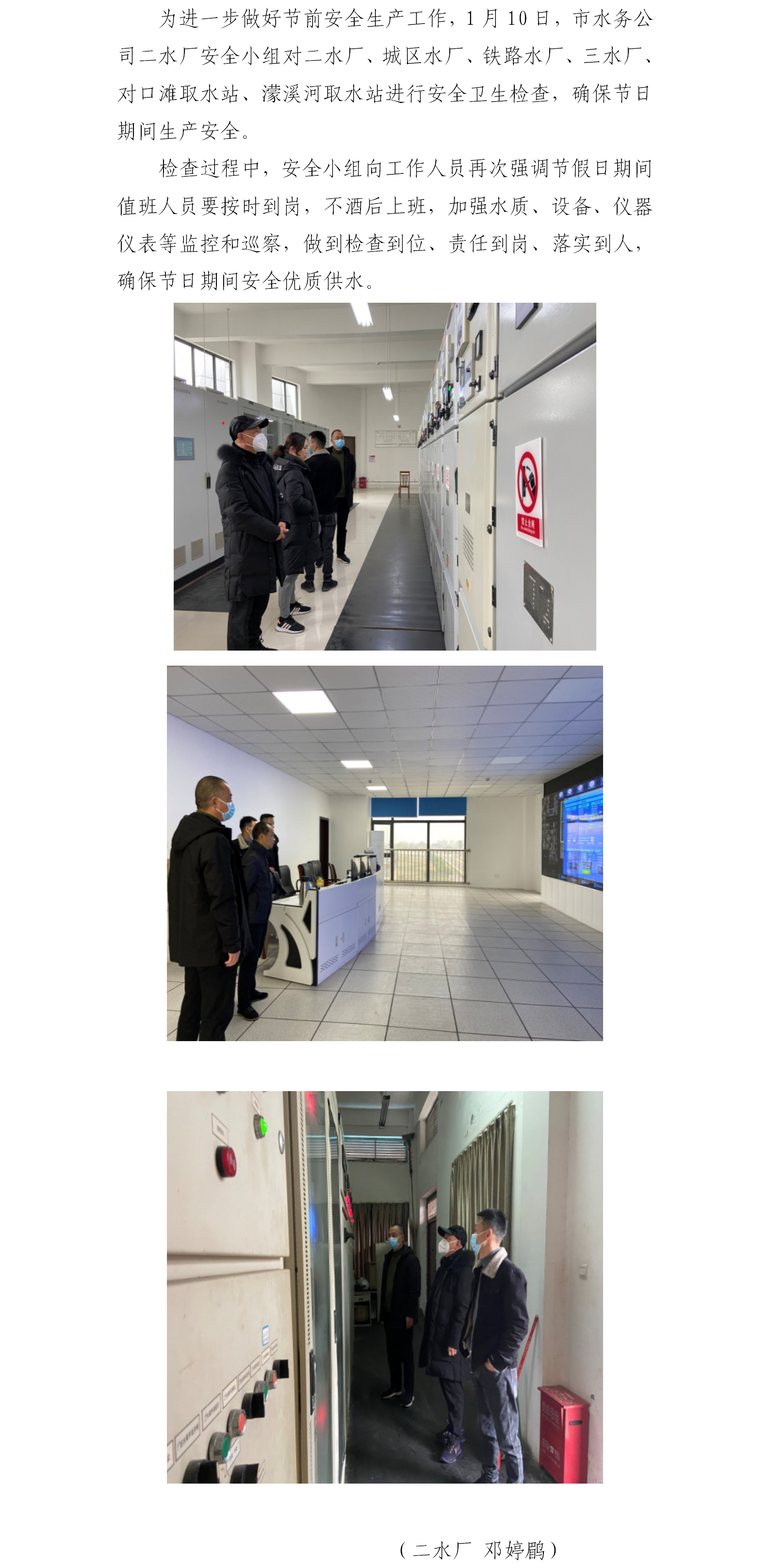 市水務(wù)公司二水廠開展節(jié)前安全生產(chǎn)檢查