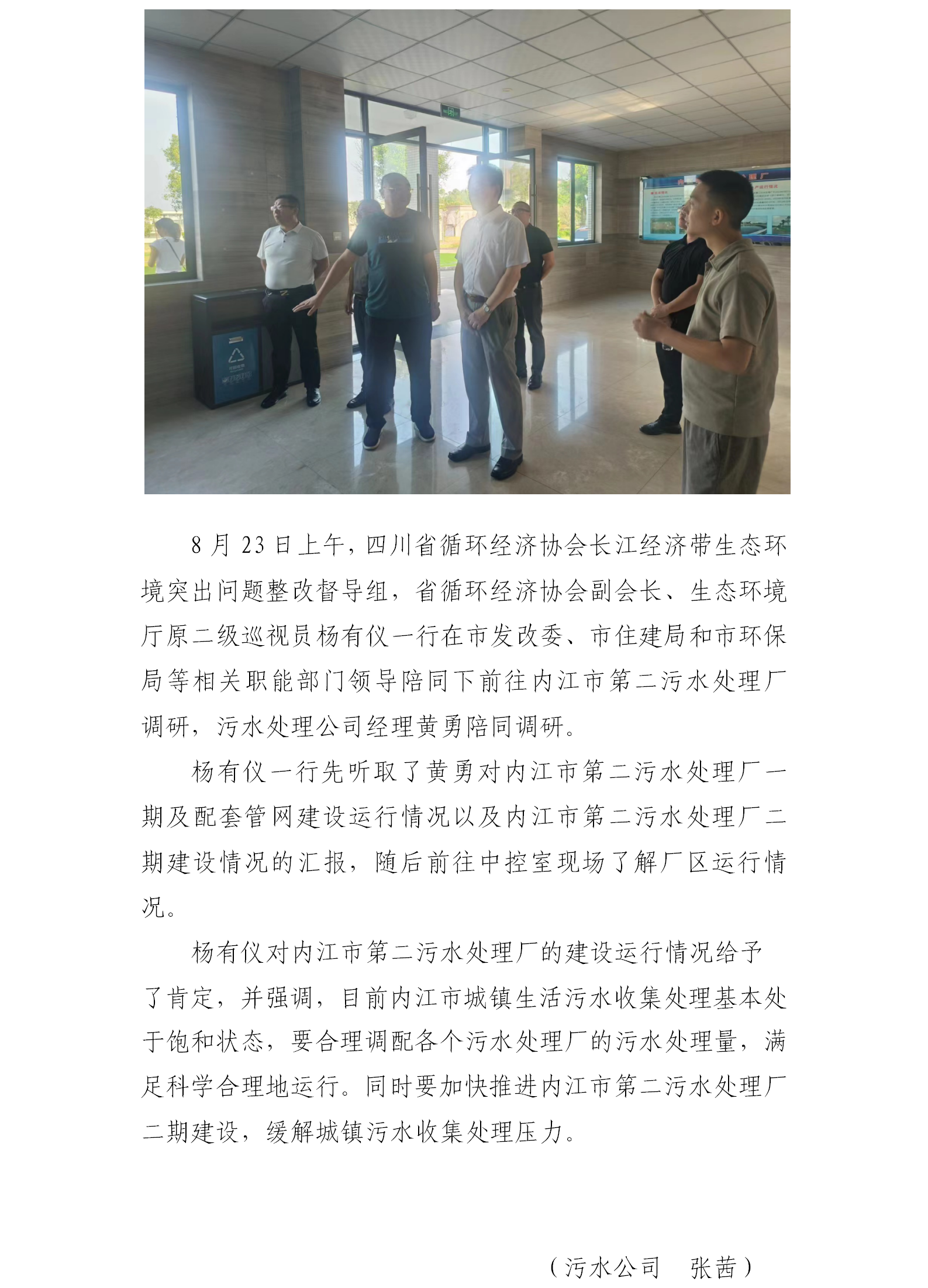 四川省循環(huán)經(jīng)濟(jì)協(xié)會長江經(jīng)濟(jì)帶生態(tài)環(huán)境突出問題整改督導(dǎo)組調(diào)研內(nèi)江市第二污水處理廠