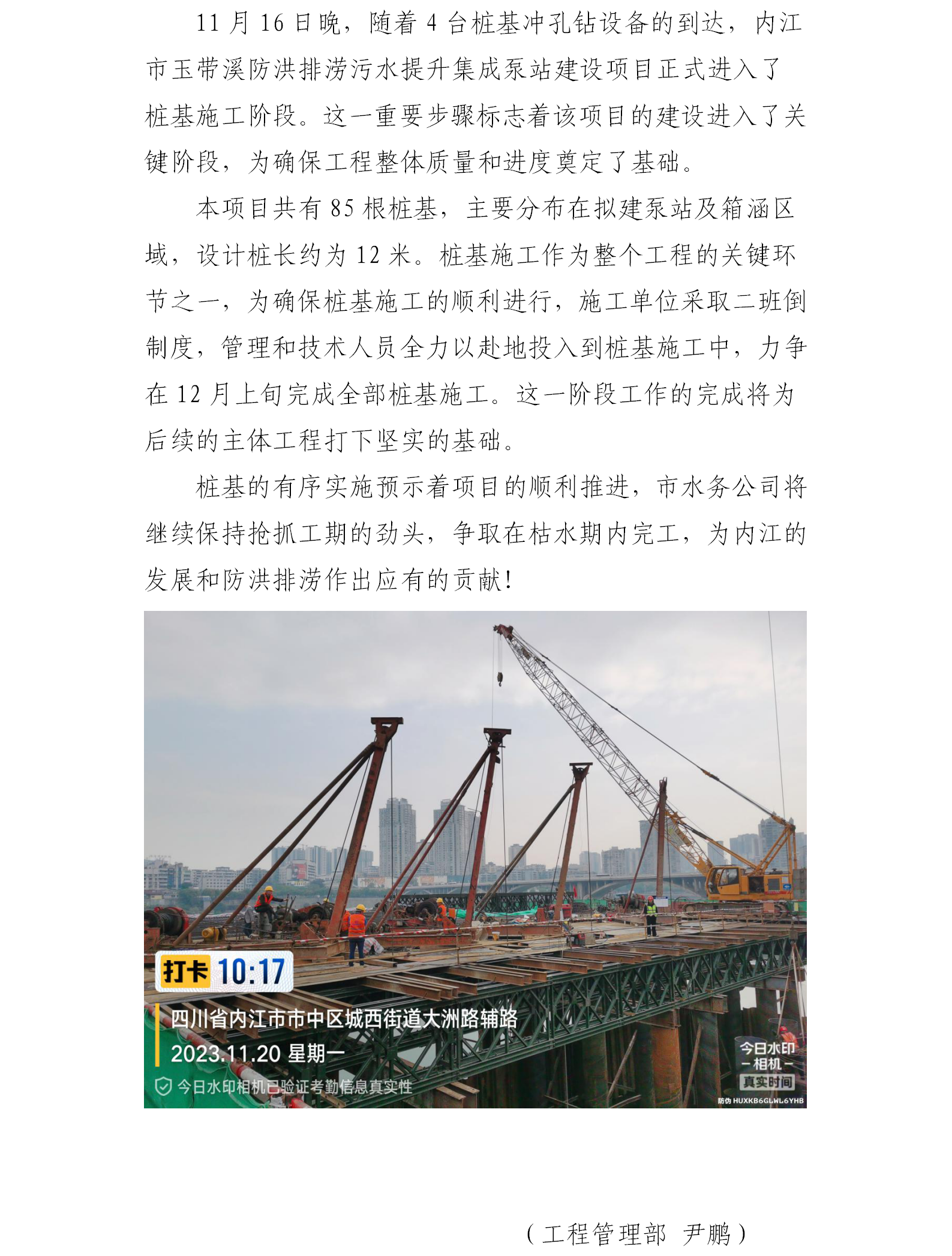 內(nèi)江市玉帶溪防洪排澇污水提升集成泵站建設(shè)項目進入樁基施工階段