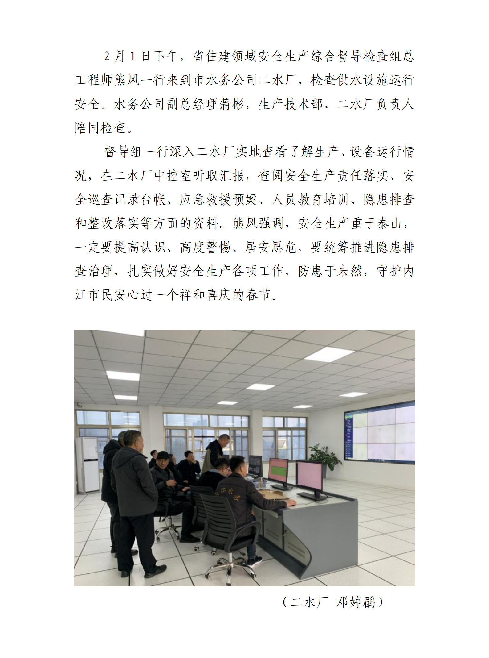 省住建安全生產(chǎn)督導(dǎo)組到二水廠進(jìn)行安全生產(chǎn)檢查