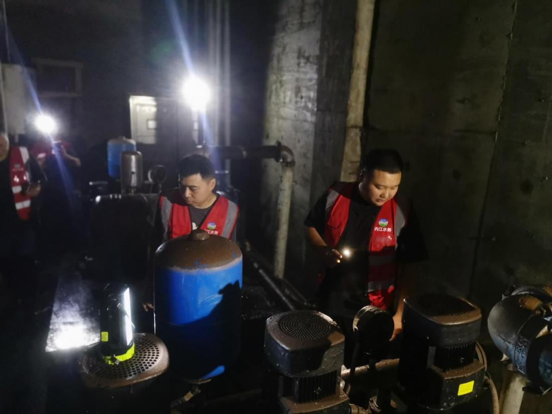 7月15日,內(nèi)江市水務(wù)有限責任公司(以下簡稱市水務(wù)公司)子公司豪鵬二次供水服務(wù)有限責任公司(以下簡稱豪鵬公司)接到該小區(qū)物業(yè)求助后,立即組織二次供水技術(shù)人員前往現(xiàn)場查看受災(zāi)情況。技術(shù)人員在對二次供水設(shè)施受損情況進行評估后,向物業(yè)公司及社區(qū)管理人員提出二次供水設(shè)施維修指導意見,并幫助小區(qū)物業(yè)制定應(yīng)急供水搶險及設(shè)備搶修方案,確保第一時間恢復(fù)居民供水。同時,豪鵬公司立即聯(lián)動市水務(wù)公司客戶服務(wù)部,在受災(zāi)小區(qū)內(nèi)設(shè)置了臨時取水點,以緩解居民用水困難。