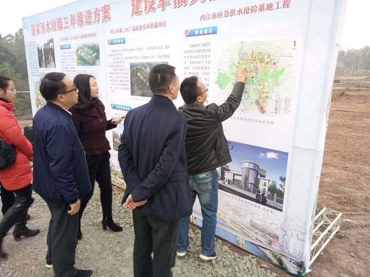 11月28日,省環(huán)境保護(hù)廳副巡視員姚東升一行到內(nèi)江,對(duì)落實(shí)污水垃圾三年推進(jìn)方案落實(shí)情況進(jìn)行調(diào)研。調(diào)研組先后來(lái)到了桐梓壩大橋至壽溪河口綜合環(huán)境整治工程、謝家河黑臭水體整治、東興區(qū)垃圾壓縮站及環(huán)衛(wèi)車輛專用停車場(chǎng),最后來(lái)到我司第二污水處理廠建設(shè)施工現(xiàn)場(chǎng)進(jìn)行實(shí)地調(diào)研。公司黨委副書記、紀(jì)委書記、工會(huì)主席李濤在《落實(shí)污水垃圾三年推進(jìn)方案,建設(shè)幸福美麗內(nèi)江》展板前對(duì)項(xiàng)目推進(jìn)情況作了詳細(xì)匯報(bào),并報(bào)告了下一步工作計(jì)劃。